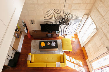 Le studio est au 1er étage d'un immeuble du 17ème siècle (escalier), mêlant authenticité par ses murs en tuffeau, poutres apparentes, et modernité par son aspect rétro. Il dispose d'un salon, cuisine et coin repas, salle de bain/WC et d'un lit double (160x200) en mezzanine (+ canapé clic clac de dépannage pour 1 personne). L'accès de la mezzanine est fait par un escalier en colimaçon, assez étroit et pentu mais original. Ce studio est donc déconseillé aux personnes fragiles ou âgées et aux jeunes enfants en âge de marcher. Destiné à un couple, avec ou sans bébé/ado, ou un petit groupe de 3 amis/famille.